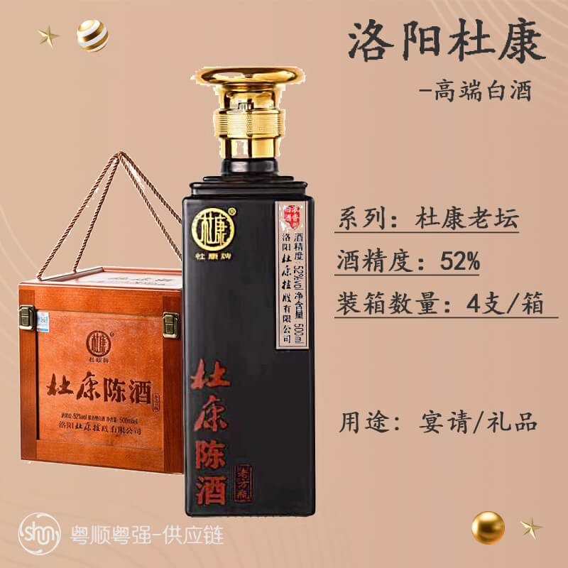 52%洛阳杜康方瓶陈酒 - 商务白酒 4瓶/箱 高端礼品